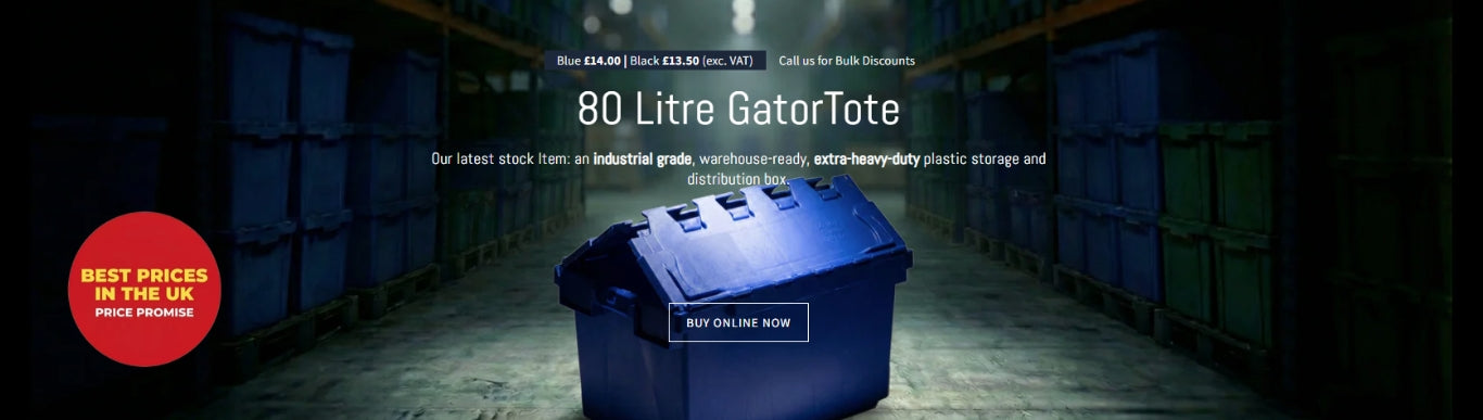 Totebox supply a vast range of plastic Tote boxes, containers and crates from our 3 acre distribution site in the Midlands. All our storage and handling products are available from stock for next day delivery to anywhere on the UK mainland (Exc. Highlands & Islands).